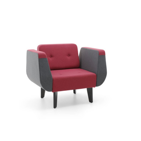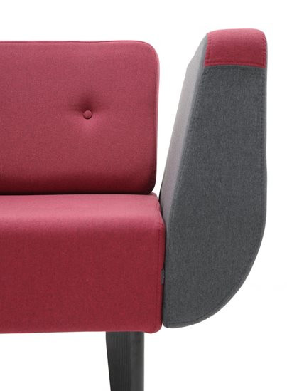 Siedzisko i oparcie tapicerowane tkaniną lub skórą z ozdobnymi guzikami. Możliwość tapicerowania w dwóch różnych kolorach w ramach tej samej grupy tkanin.