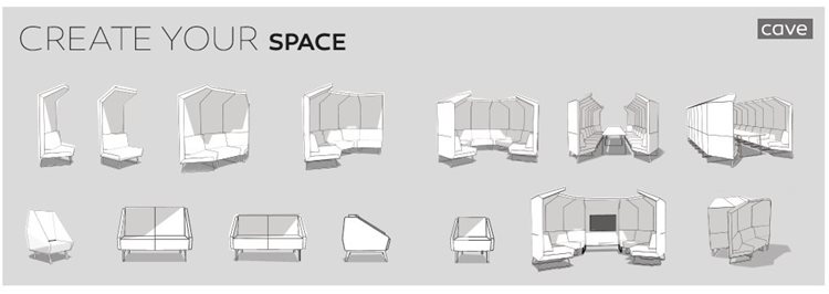 W CAVE pracownicy dowiadują się, jak ważni są dla organizacji; spełnia nasze potrzeby; daje poczucie bezpieczeństwa i braterstwa, to idealne miejsce do rozmowy o tym, co jeszcze się nie zmaterializowało, czyli o wstępnych ideach. System Cave został opracowany z myślą o zapewnieniu komfortu, wygody i ciszy. Odpowiednio dobrane komponenty, kształty i tkaniny zapewniają odpowiednią akustykę. A różnorodność modułów zapewnia szerokie możliwości aranżacyjne dostępnej przestrzeni.