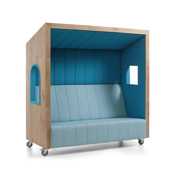 W przypadku BEACHHOUSE projektant Dymitr Malcew kształtem nawiązał do kosza plażowego, wprowadzając pozytywną atmosferę lata do wnętrza. Wspólne miejsce siedzenia ułatwia „przełamanie lodów” i pozwala wyznaczyć zgodny kierunek działania. Łatwiej rozwiązywać firmowe problemy w komfortowej przestrzeni. Dzięki temu, że widzimy do kogo mówimy i nie słyszymy w tym czasie innych osób – nasz pomysł prezentowany jest swobodnie i konkretnie.