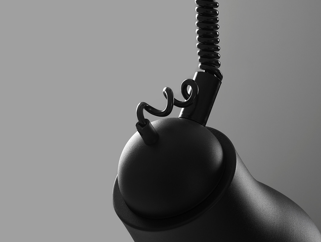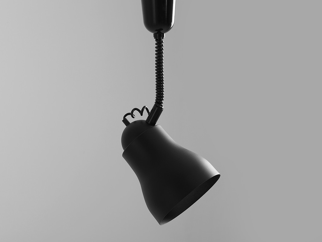 Lampa wisząca w dwóch wariantach: bieli i czerni. Przekorny, „przekrzywiony” design zwraca uwagę.