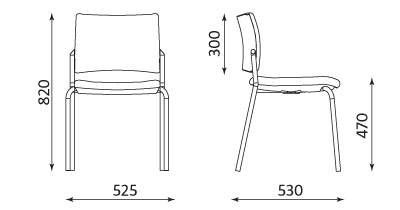 Krzesło wykonywane jest na płozach lub czterech nogach, w dodatkowych opcjach możliwość zakupu podłokietników oraz białych osłon i minikółek